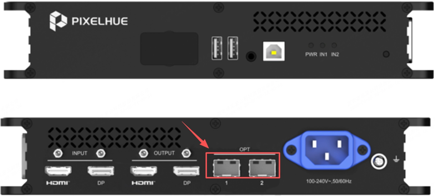 PIXELHUE's optical port output can be directly connected to the COEX device MX30/MX40 Pro using the optical fiber cable, eliminating a pair of optical-to-electrical converters in the middle.