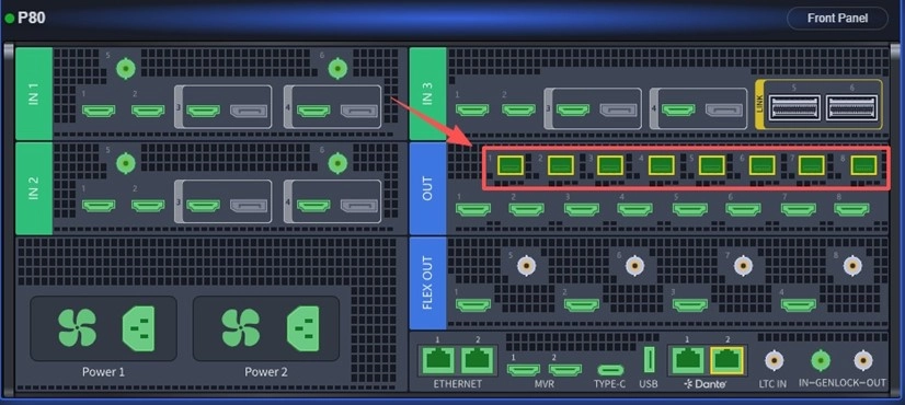 Switcher mode: supports up to 1*4k output or 4*SL outputs; PGM Only mode: supports up to 2*4k outputs or 8*SL outputs; 4k consists of the upper and lower optical ports spliced left and right
