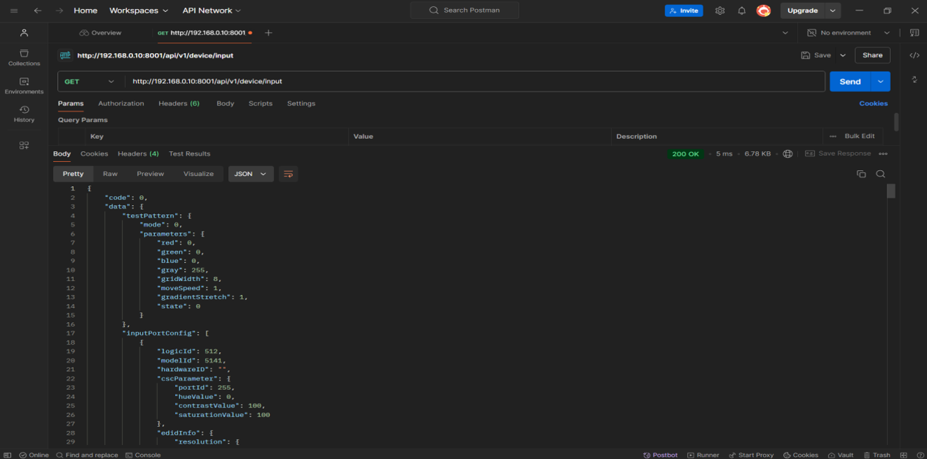 URL: http://192.168.0.10:8001/api/v1/device/hw (Request Address)