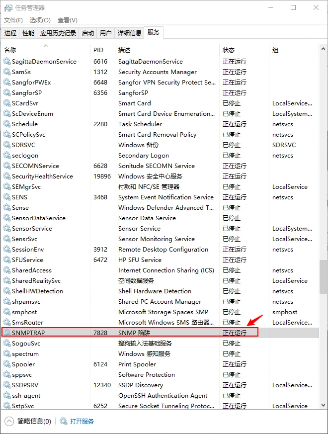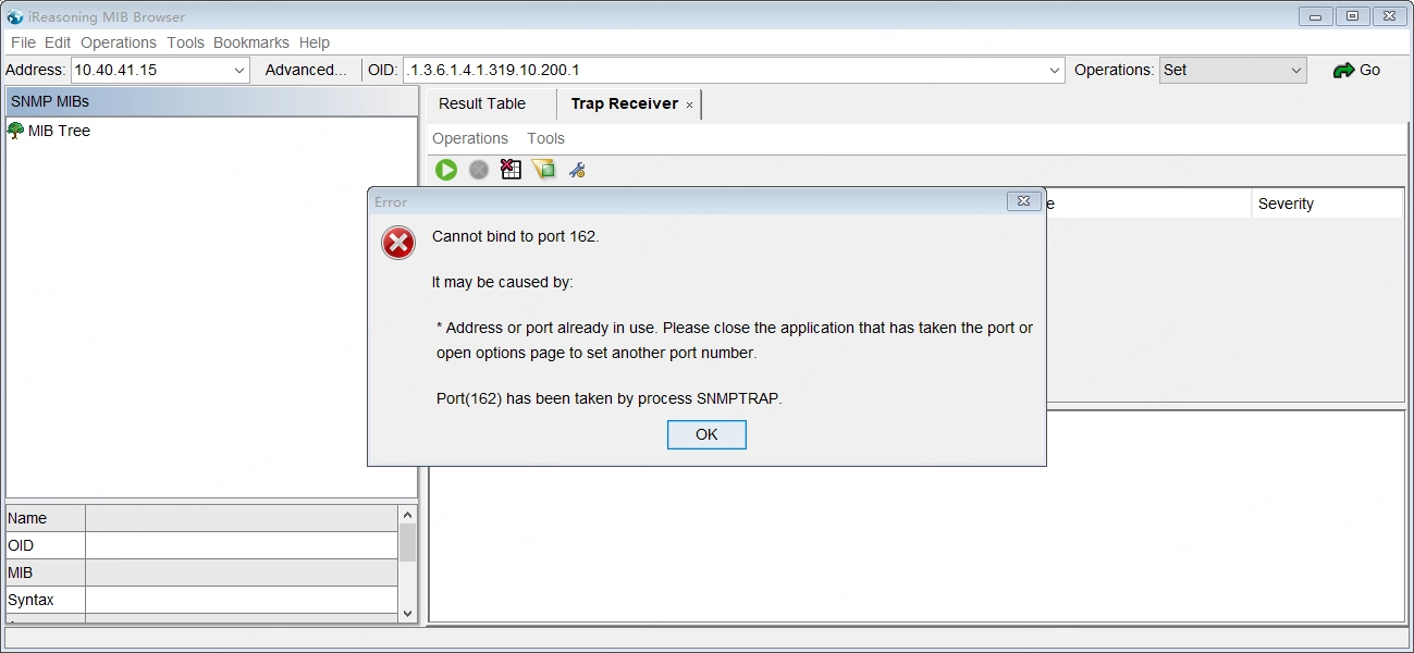 If the Windows operating system is using port 162, an error message will appear. To resolve this, close the SNMP TRAP service in the Task Manager to enable proper listening.